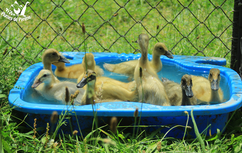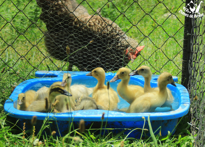 Prochaines étapes des semaines à venir : sorties la journée de la deuxième couvée (dans quelques jours si la beau temps persiste) et déménagement de la première couvée sous la volière pour plus d’espace pour galoper et fouiner, et une plus grande piscine ! 🙂