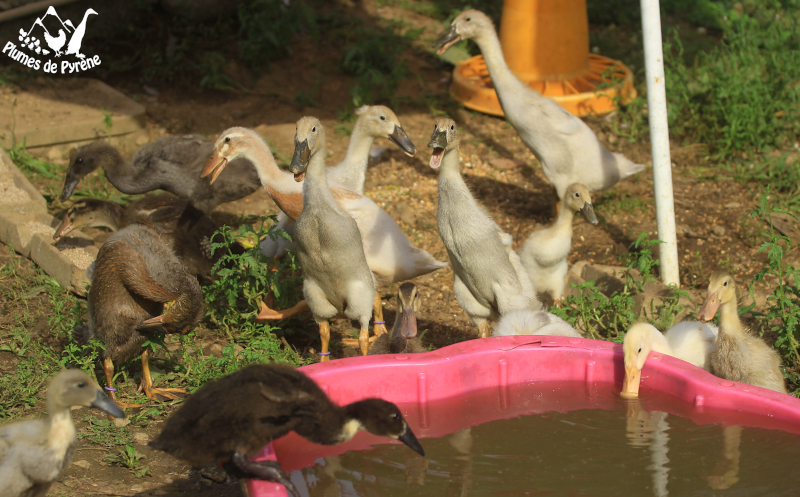 Nos canetons du printemps nés le 15 mai (issus d’oeufs achetés en Dordogne) continuent à grandir, ils ont dépassé le mois et le sexage est désormais fait : 6 femelles et 4 mâles.